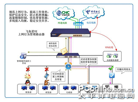 其次,尝试选择新兴的上网行为管理设备。当上网行为管理设备成为业界新兴网络安全产品的焦点,众多深陷“内患”困扰的公司将目光投向上网行为管理产品,希望能够借此一举解决诸多难题。同传统的网络安全产品只能实现部分简单的Internet访问控制功能相比,上网行为管理产品旨在对企业级用户的所有上网行为进行综合管理,当前一个完整的上网行为管理产品一般都会涵盖Web访问过滤、P2P下载控制、网络聊天管理、网络娱乐控制、带宽流量管理、信息收发监控、互联网活动审计、特殊应用控制等模块。在此基础上,当每一个数据包进入网络之后,都会经受上网行为管理设备的检验。