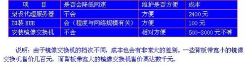 上述三种方案各有优缺,下面,笔者列表阐述一下每种方案的优劣(如图二),网吧经营者可以根据自己的网吧规模选择属于自己的上网监控网络改造方案。