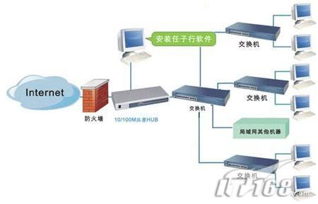 在实际应用中,如何改造网络才能保证上网监控软件能够正常工作,而且不影响网吧的网络速度呢?下面,笔者列举常用的几种上网监控系统的网络部署方案供大家参考。