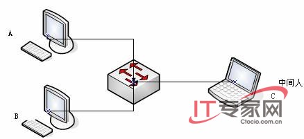 对于主机A来说,它就会错误的认为主机C就是其要发送数据的对象。从而将数据直接发送给主机C。此时对于主机A和主机B之间的任何通信,就会被发送到主机C上。然后主机C在获取相关的内容之后,可能进行流量的重定向。在这个过程中,主机C就被称为中间人。这个过程就被称为中间人攻击。