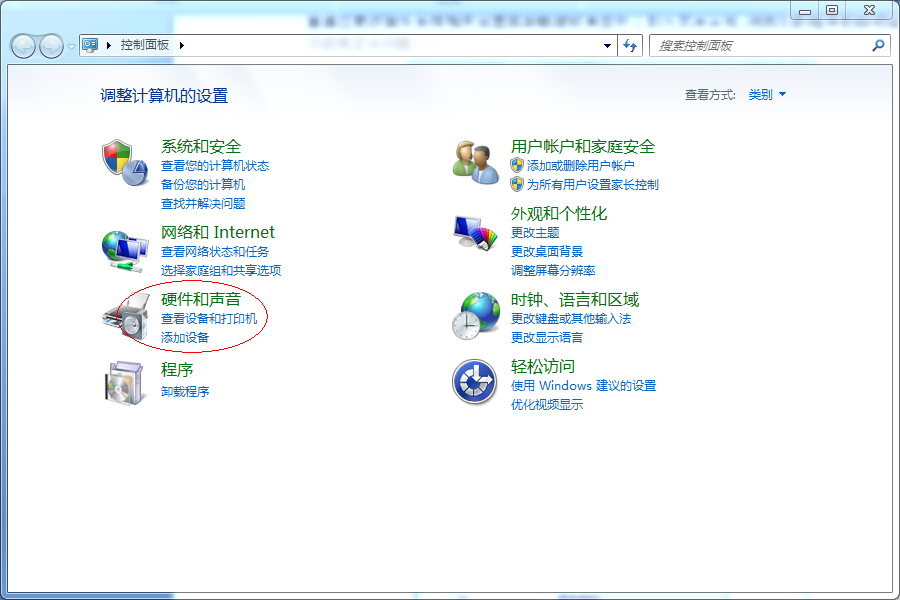 图:打开“硬件和声音”