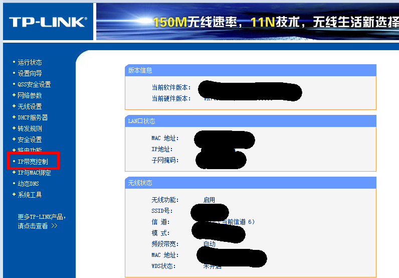 登录路由器,然后打开路由器的设置界面,左侧栏有一个IP带宽控制。