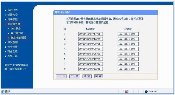 首先,通过路由器的IP和MAC地址绑定来限制手机接入公司无线局域网。现在很多无线路由器也有IP和MAC地址绑定功能。通过绑定局域网电脑的IP和MAC地址,可以防止手机、平板电脑或员工自己的笔记本电脑接入公司局域网,从而可以禁止手机上网。但是,这样做也有负面影响,那就是公司的笔记本电脑无法自动获取IP地址了,而必须由网管员统一指派,上网的便利性受到一定的影响。如下图所示: