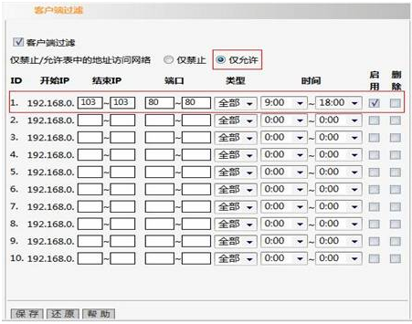 图:路由器只让部分电脑上网的设置