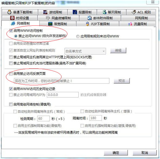 图:聚生网管禁止上网但允许发送邮件的功能