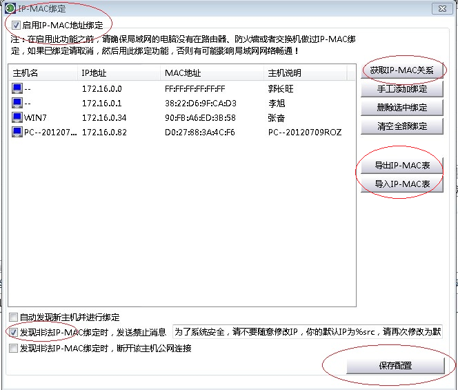 图:绑定局域网IP和MAC地址、实现IP和MAC捆绑