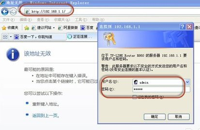 在浏览器地址栏里输入192.168.1.1,会弹出如图对话框。TP-LINK路由器默认用户名和密码为admin。输入用户名和密码。回车确定。