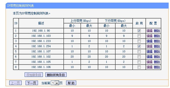 图:路由器限制上行带宽和限制下行带宽截图