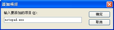 点击“添加”,输入要禁用的程序名称(主运行程序名称),例如notepad.exe,如下图: