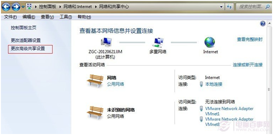 1、打开控制面板—网络和Internet—网络和共享中心—更改共享高级设置。