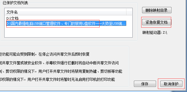 经过“大势至共享文件加密软件”加密后的共享文件,点点鼠标就可以随时进行解密、还原到未加密前的状态,同时还集成了“紧急恢复文档”的功能,从而进一步确保了共享文件的安全,完全不会因为加密而导致共享文件的损坏或丢失的问题;而同类共享文件加密软件被加密后,解密和还原的工作较为复杂,操作不当还会导致共享文件的损坏或丢失,从而极大地增加了使用此类加密软件的风险,不利于实现较为安全的共享文件访问控制。