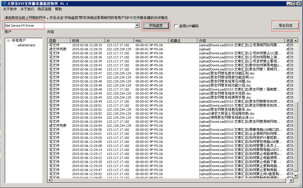 图:大势至FTP文件服务器监控软件
