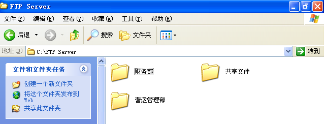 现创建一个FTP Server文件夹,文件夹下包含财务部、营运管理部、共享文件三个文件夹。