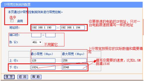 通常,很多无线路由器都带了一些基本的网络控制功能,如禁止局域网网购、禁止在线看视频、限制局域网网速等。同时,无线路由器上述功能的配置也较为简单。登陆路由器之后,一般在左侧可以看到“带宽限制”、“上网行为控制”等,然后点击进去就可以进行一些配置。如下图所示: