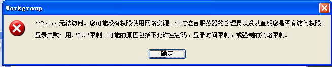 如果此时还出现共享文件拒绝访问的情况,尤其是XP系统访问Win7系统时无法访问,如下提示: