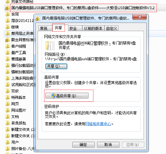 然后点击“共享”,并点击“高级共享”,如下图所示: