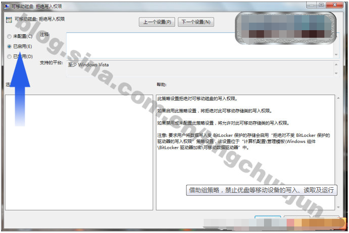 类似的设置还有上面的“拒绝读取权限”和“拒绝运行权限”,分别设置成“已启用”,就可以禁止读取USB设备和禁止USB设备中程序的运行了
