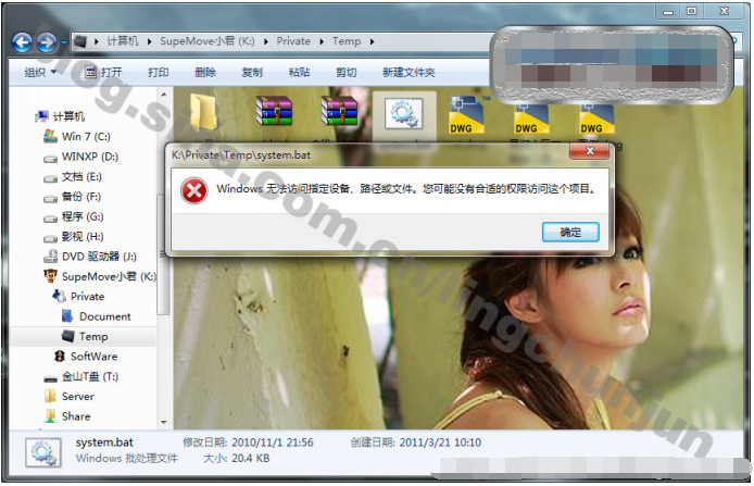 打开U盘,这时再向其中写入文件,就会提示出错了
