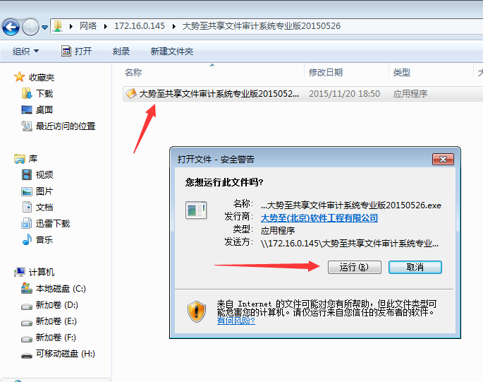 首先,需要下载一款共享文件夹加密软件,例如有一款“大势至共享文件夹访问权限控制软件”(下载地址:http://www.grabsun.com/gxwjjm.html),然后解压,双击里面的,如下图所示: