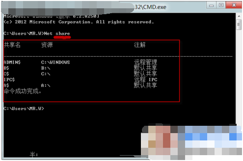 ▲用命令查看共享