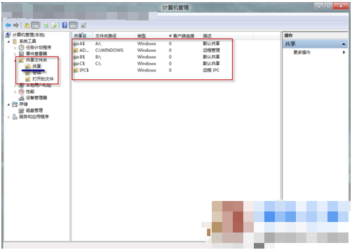 ▲通过“计算机管理器”查看共享
