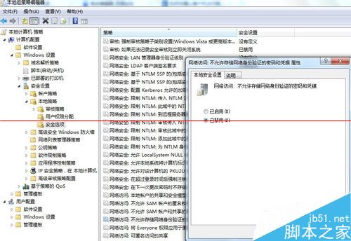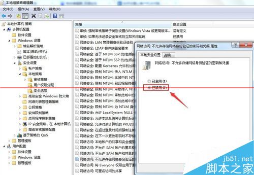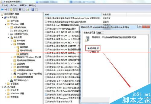 5、默认情况下,该项是“已禁用”,选择”已启用“,然后再点击”应用“按钮,应用后,重启电脑,以后该电脑每次访问共享时都需要输入帐号和密码,该电脑不会存储网络共享的账号和密码了,如图所示: