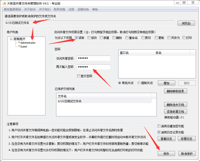 图:用局域网共享权限设置软件来设置共享文件访问密码