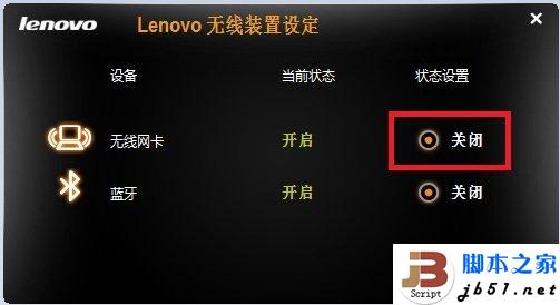 也可以使用快捷键:Fn+F5,将无线网卡状态选为“关闭”也可禁用无线网卡,如下图所示: