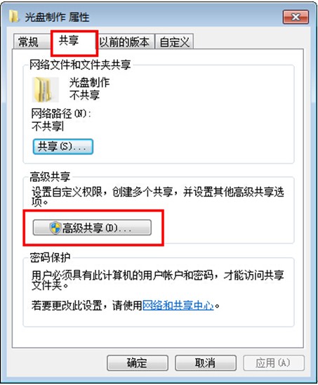 2:打开“高级共享”对话框,单击“高级共享”按钮,如图所示。