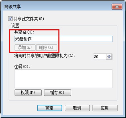 4:单击“确定”按钮,返回“高级共享”对话框,在“共享名”下拉列表框中选择旧的共享名,然后单击“删除”按钮。