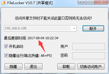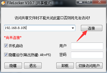 此外,如果你之前设置了客户端隐藏运行,则可能你双击客户端程序FileLockerMain.exe的时候,程序就自动后台运行了,这个时候你需要按下alt+f5键来唤出软件(如果是笔记本电脑,则需要同时按下fn键才可以),然后输入密码进去之后再进行连接。