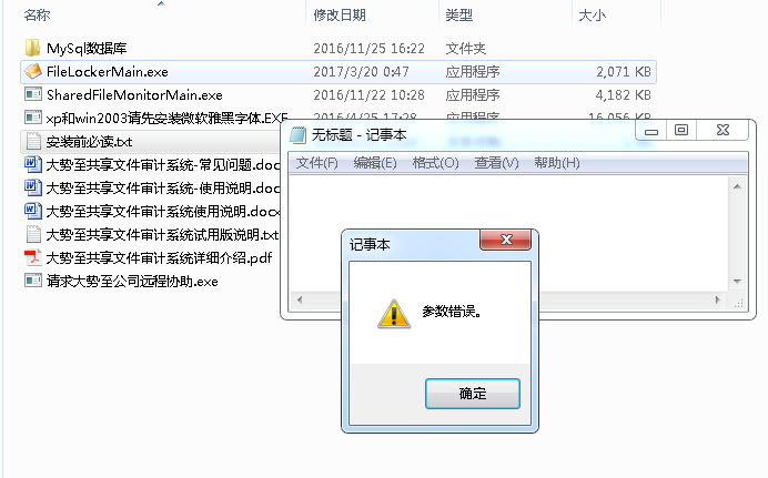 大势至共享文件夹权限设置软件的“高级功能”(也即带*号的功能),比如“禁止复制文件”、“禁止复制文件内容”、“禁止另存为”、“禁止打印文件”等情况下,访问者必须启用大势至共享文件管理软件的客户端软件——FileLockerMain.exe,并且正确连接到服务器的情况下,才可以正常访问共享文件,否则将大势至共享文件管理软件拒绝访问共享文件,或打开共享文件时提示“参数错误”。