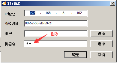 这里需要特别注意的是:如果获取了访问者的机器名的情况下,则不能加入绑定,否则会导致访问者依然无法访问共享文件,这个时候只要双击绑定表中的这个电脑,然后删除其机器名并点击确定即可,这样就不绑定其机器名了。如下图所示: