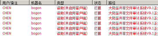 此外,在“大势至局域网共享文件管理系统”的实时日志输出这里也会提示“没有启用客户端”字样。这种情况下,只要访问者的本机运行客户端软件,或者在共享文件夹内双击FileLockerMain.exe就可以正常访问共享文件了。如下图所示: