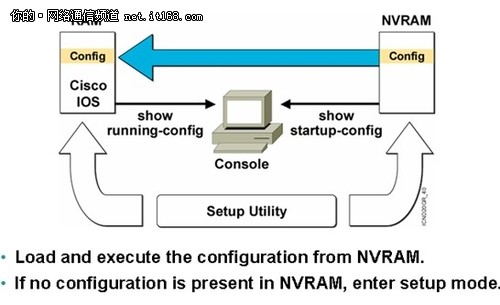 NVRAM我个人认为翻译成非易失性RAM比较合适。如同PC机上的CMOS,其中存放的是路由器的配置文件。NVRAM的内容可以用“erase memory”或“write erase”将配置参数删除到出厂设置状态,所以相对于路由器丢失了IOS,删除NOVRAM的后果不是很严重,恢复起来也容易一些。在路由器正常启动后,它会将NVRAM的内容拷贝到内存一份,我们对路由器的设置实际上就是修改内存中的参数。所以内存和NVRAM中的内容是可以不一样的,直到使用“write memory”、“copy running-config startup-config”将内存设置保存到NVRAM中,或用“reload”、“copy startup-config running-config”、重启路由器等办法将NVRAM的内容重新调入内存,才能实现NVRAM与内存之间的同步。用“show configuration”命令可查看NVRAM中的设置,用“show running-config”、“write terminal”命令则可以查看当前运行的设置(在内存中)。