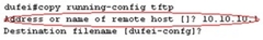 如我们希望将当前的配置文件保存到 TFTP服务器,可以作用命令 copy running-config tftp