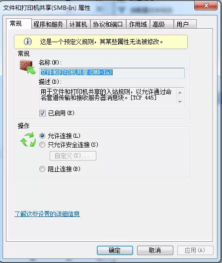 l 首先确保被设置机器的防火墙已开启445端口(SMB-IN)