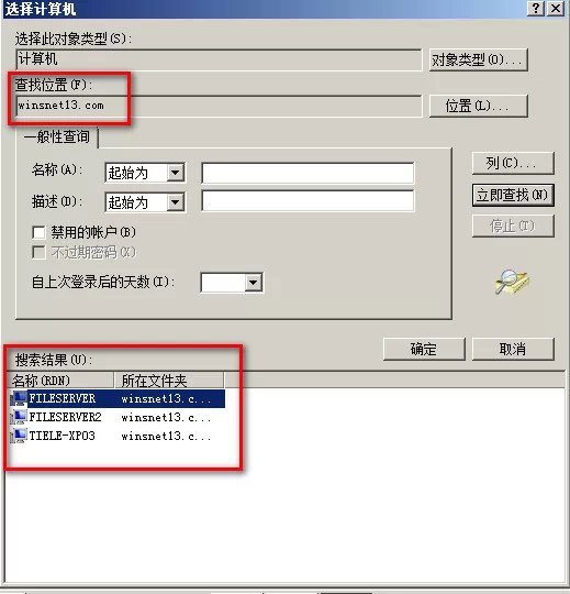 如上图,在域环境中查找计算机