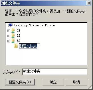 在出现的【浏览文件夹】对话框中选择要共享的文件夹或单击【新建文件夹】按钮创建新的文件夹,然后单击【确定】按钮