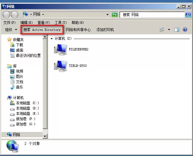 【网络】窗口,单击“搜索Active Directory”