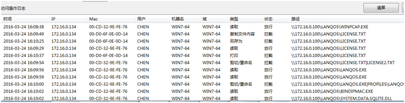 此外,本系统还可以实时记录共享文件访问日志,以及将共享文件访问记录导出备份的功能,从而便于事后备查和审计。如下图: