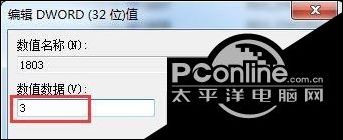 4、双击打开1803,在编辑窗口把数值数据由“0”修改为“3”,然后点击“确定”即可。