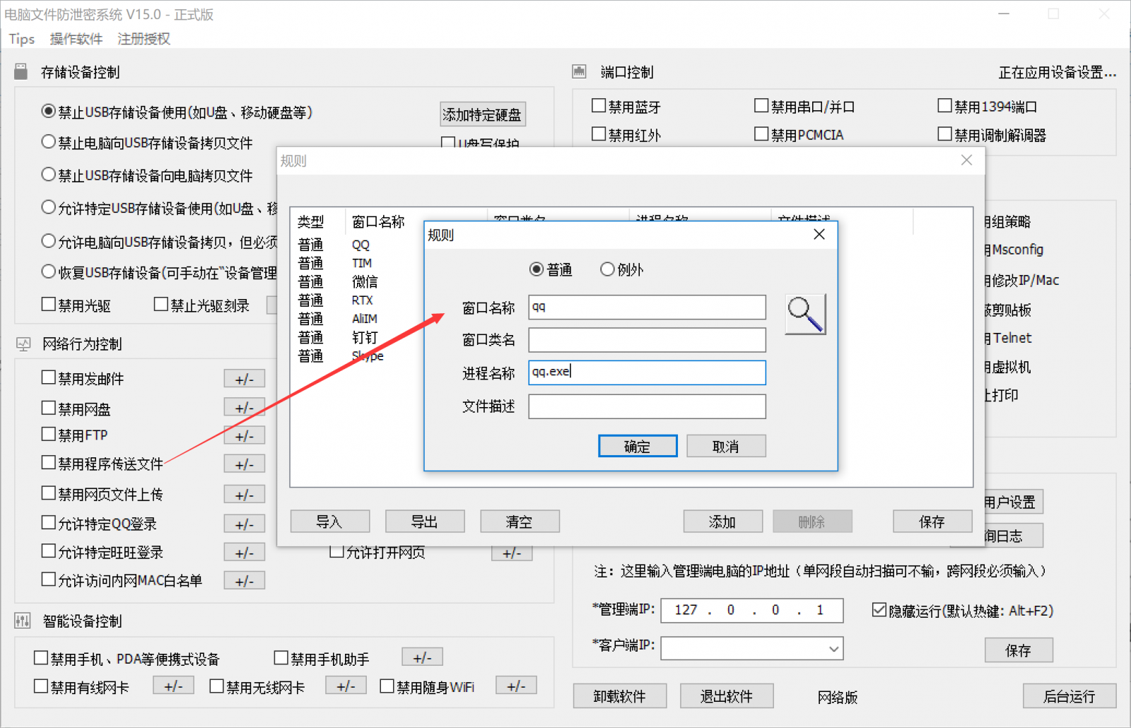 这样就实现了禁止QQ发送文件、禁止微信发送文件、禁止钉钉发送文件、禁止阿里旺旺发送文件等一切聊天软件发送文件的功能。